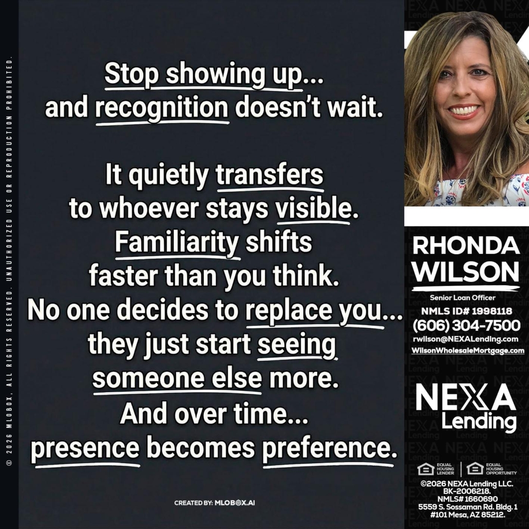 STOP SHOWING - Rhonda Wilson -Senior Loan OfficerHi, my name is Rhonda Wilson. I’m a Loan Officer with NEXA Lending LLC., offering personalized mortgage solutions, fast customized quotes, great rates and service with integrity.
